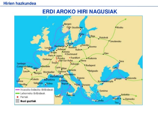 Venezia, Genova, Marseilla, Bartzelona eta Valentzia hiriak, besteak beste, Ekialde Hurbilarekin eta Bizantziar Inperioarekin aritzen ziren salerosketan. Luxuzko produktuak inportatzen zituzten (zeta eta espeziak), eta ehunak, armak eta erremintak esportatzen.